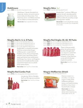 PDF Product Summary - Young Living NingXia Nitro is a simple and convenient way to become more focused, support mental acuity, and enhance physical performance. Primary Benefits • 1%*Increases mental fitness, cognitive alertness, and physical acuity • Vitamin B6 (Pyridoxine HCl)Enhances athletic performance and endurance • Boosts energy and serves as a daily pick-me-up Neuro-Auricular Technique - Fuller Life Wellness NEUROAURICULAR TECHNIQUE was developed by Dr. Gary Young and involves application of essential oils to the rims of the ears, the back of the skull and along the spine. Stimulation of acupressure points on the rims of the ears and along the occipital ridge from the brain stem outward towards the ears enhances the effects of the therapeutic-grade ... PDF Ningxia Red and its affect on diabetes - Alternative Solutions I took the Ningxia Red 90 day Challenge from Young Living. My cholesterol dropped 100 points and my triglycerides dropped 105 points along with 20 pounds. I take 2 ounces per day. Use my contact link above if you'd like to have more information. Notes: Contact Info: Is Young Living's Ningxia Nitro ok? - Can I have ___? - Whole30 Ingredients: Purified water, Nitro juice blend concentrate: (Cherry, Kiwi, Blueberry, Acerola, Bilberry, Black currant, Raspberry, Strawberry, Cranberry), Coconut nectar, Natural flavors, Pectin, Xanthan gum I have attached more information about Ningxia Nitro (pdf attached). If anyone could help me out, it would be greatly appreciated.