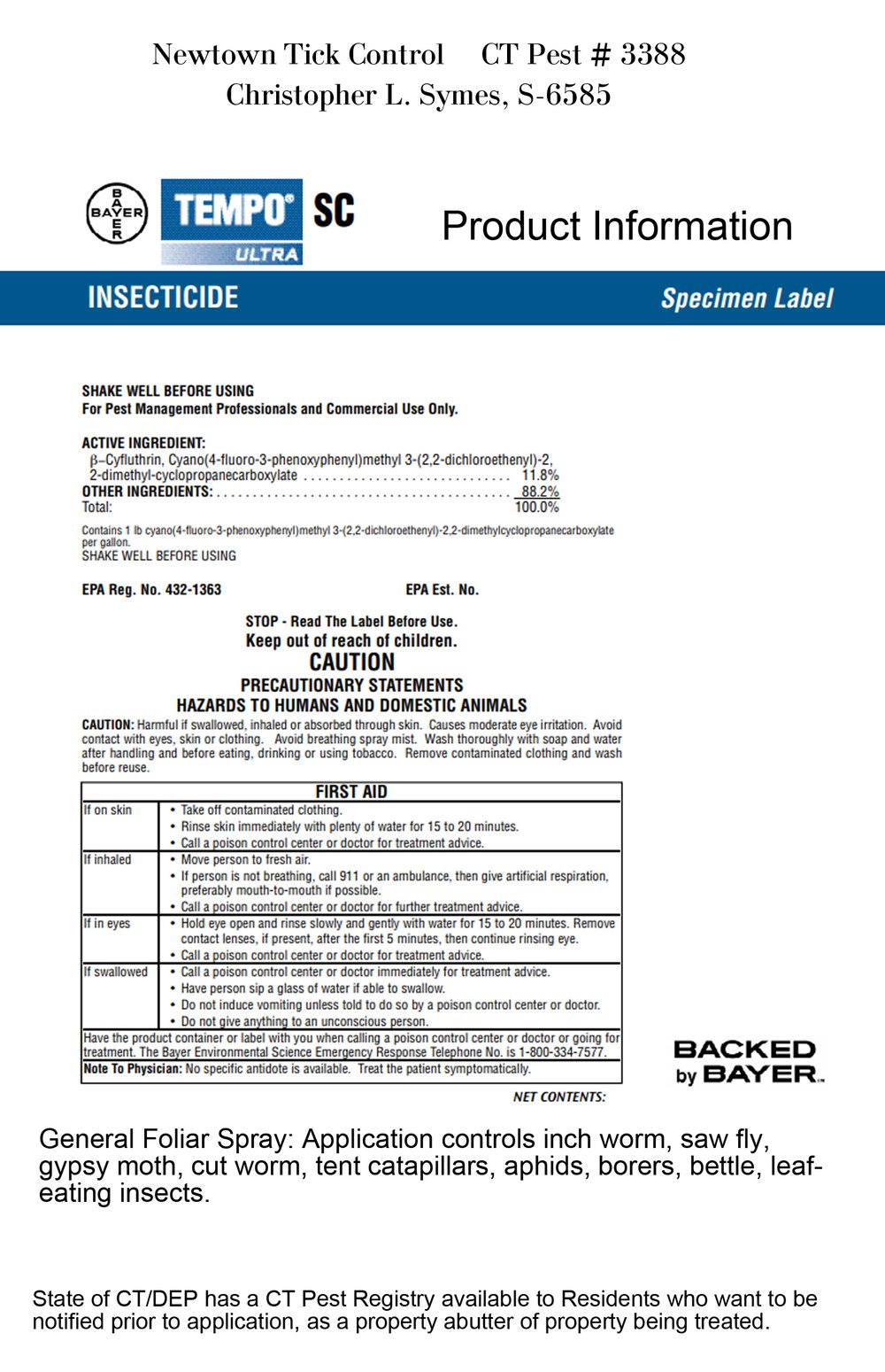 PDF US EPA, Pesticide Product Label, TEMPO SC INSECTICIDE,06/04/2019 BAYER Bayer Environmental Science. Title. US EPA, Pesticide Product Label, TEMPO SC INSECTICIDE,06/04/2019. Author. US EPA,Office of Pesticide Programs. Subject. Pesticide Product Label, TEMPO SC INSECTICIDE. Keywords. Pesticide Product Label, TEMPO SC INSECTICIDE,BAYER ENVIRONMENTAL SCIENCE,432-1363.