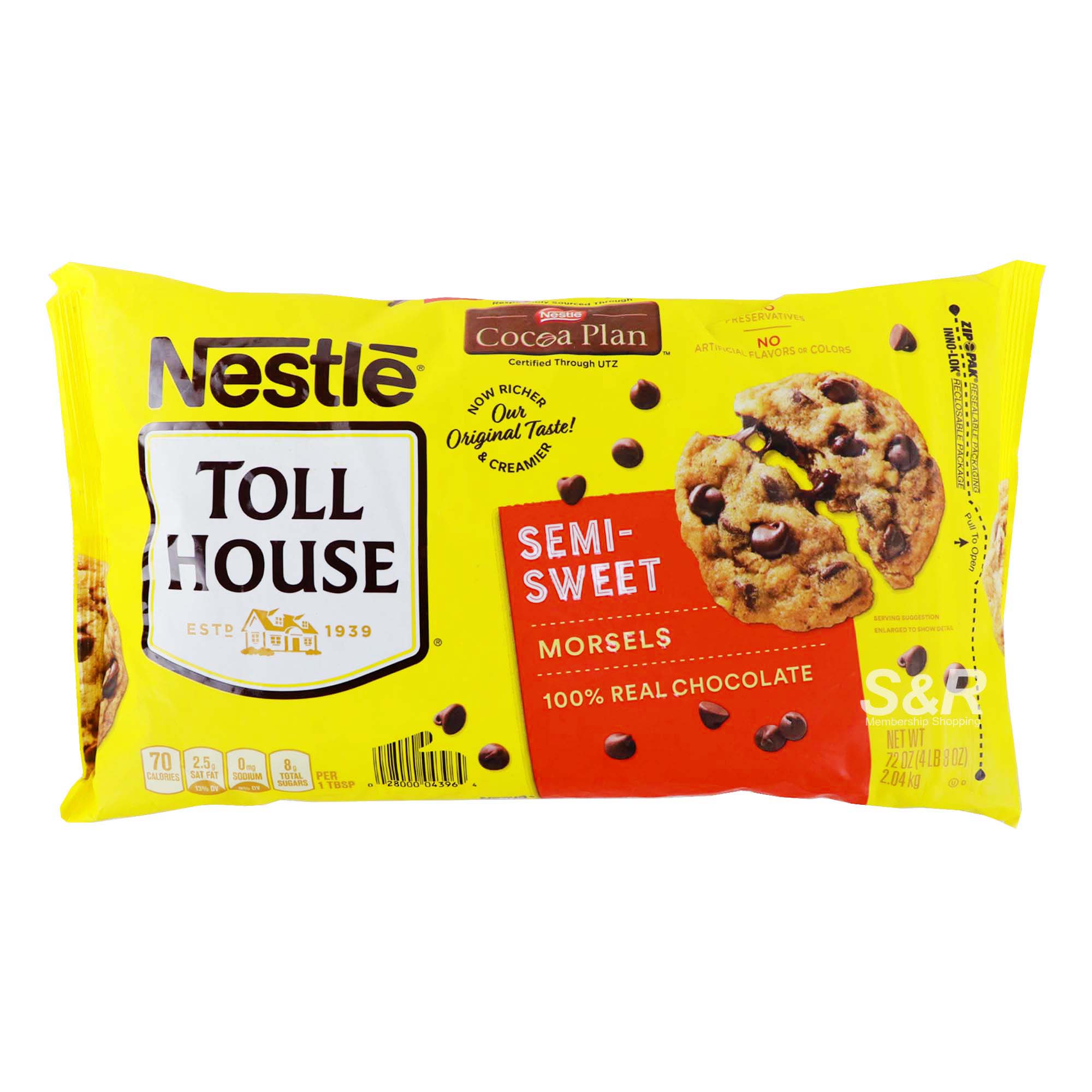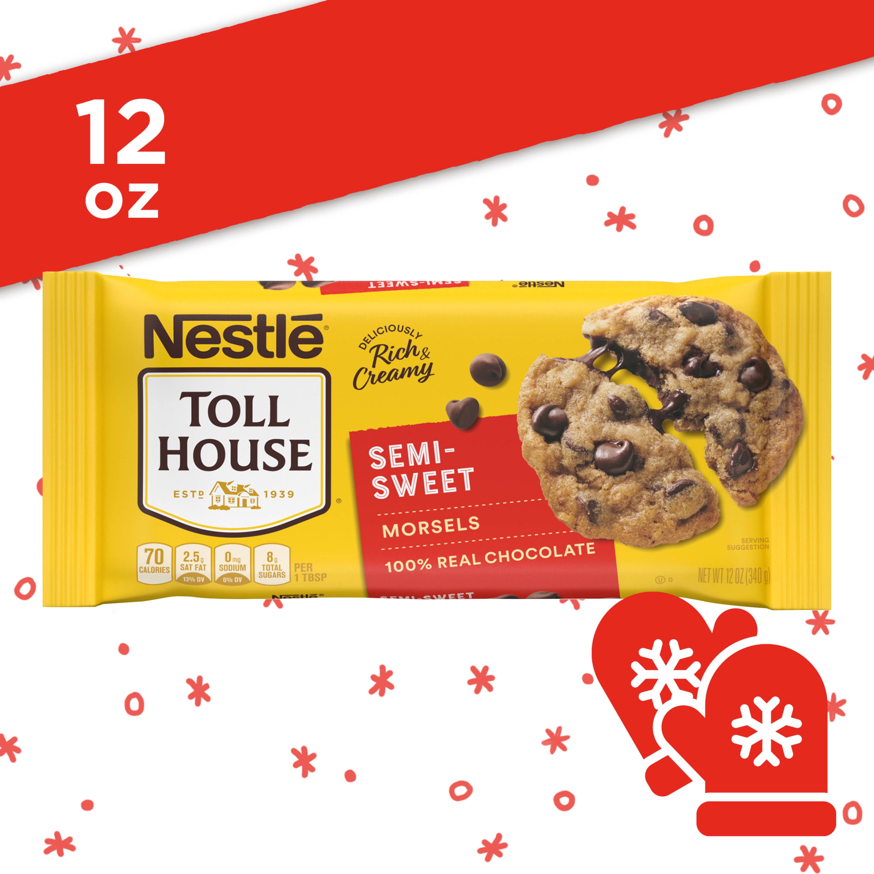 NESTLÉ® TOLL HOUSE® Semi-Sweet Chocolate Morsels Made with deliciously rich and creamy 100% real chocolate. Skip to main content. Verybestbaking.com ... Calories: 70 % Daily Value* Total Fat 4g: 5% : Saturated Fat 2.5g: 13% : Trans Fat 0g : Cholesterol 0mg: 0%: Sodium 0mg: 0%: Total Carbohydrate 9g: 3% : Dietary Fiber <1g: 3% : Total Sugars 8g : Incl. 8g Added Sugars : 16% : Protein <1g : Vitamin D 0mcg …