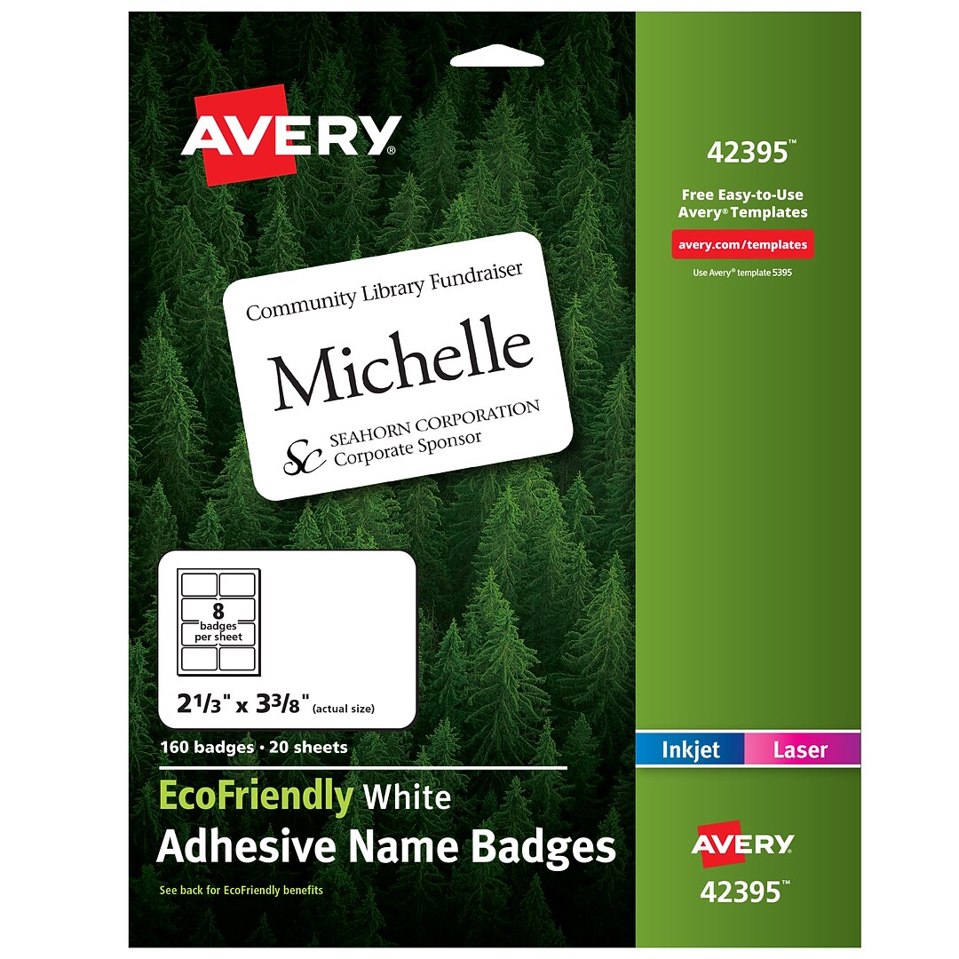Amazon.com : Avery 8395 Laser/Inkjet Name Badges,2-1/3-Inch X3-3/8-Inch ... Amazon.com : Avery 8395 Laser/Inkjet Name Badges,2-1/3-Inch X3-3/8-Inch,160/Pk,Plain We : Office Products ... Write directly on them, or use free templates from Avery Design & Print to easily add specialized messages, text, graphics and logos on the spot at meetings or seminars. Improved flexibility allows the badges to move with your clothing ...