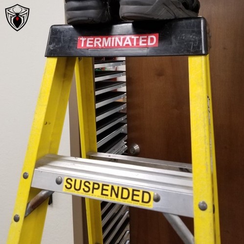 Ladder Safety and Warning Labels | Affordable yet durable Ladder Warning Labels can be adhered to almost all surfaces and keep employees out of harm's way. • Don't let a misstep become the cause of an injury to your employees. Install labels and signs near ladders and ensure employee safety. • Labels are affordable yet durable. They have a good resistance to high temperatures, fading, chemical ...