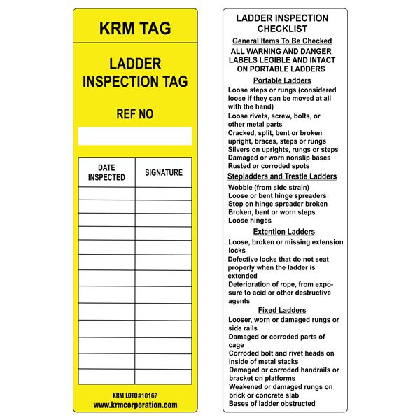 OSHA Requirements for Rolling Ladders & Product Safety Tips Workplace Rolling Ladder Training Tips: Inspect ladder of any flaws/damage Have a safe and secure place to store ladders Types of locking mechanism (weight or manual lock) Check weight capacity Follow training requirements of OSHA 29 CFR 1910.30: Training Requirements Teach usage tips Mobile Ladder Usage Tips: Do not lean off the ladder Ladder Inspections and Checklists for Ladder Safety - Safesite The first step in ladder inspection is ensuring that all the manufacturer's tags, labels, and stickers are still on the ladder. The labels should be clearly legible, without painting or other markings covering them up. The information on these tags and labels includes: Ladder size Type and/or duty rating