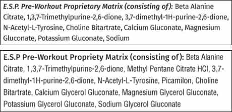 ESP Pre Workout Review - is this flashy pre workout any good? Ingredients in ESP Pre Workout Beta Alanine Citrate - Looking at the ESP label, you can clearly see this "beta alanine citrate". We've never heard of it, and can't find anything on it. Best guess is that this is a typo on the label. 1,3,7-Trimethylpurine-2,6-dione - This is the chemical name for caffeine ( 1 ). Nothing fancy here.